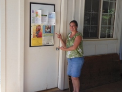 The keys will be pinned to the back door on the Lanai if no one is at the church. |